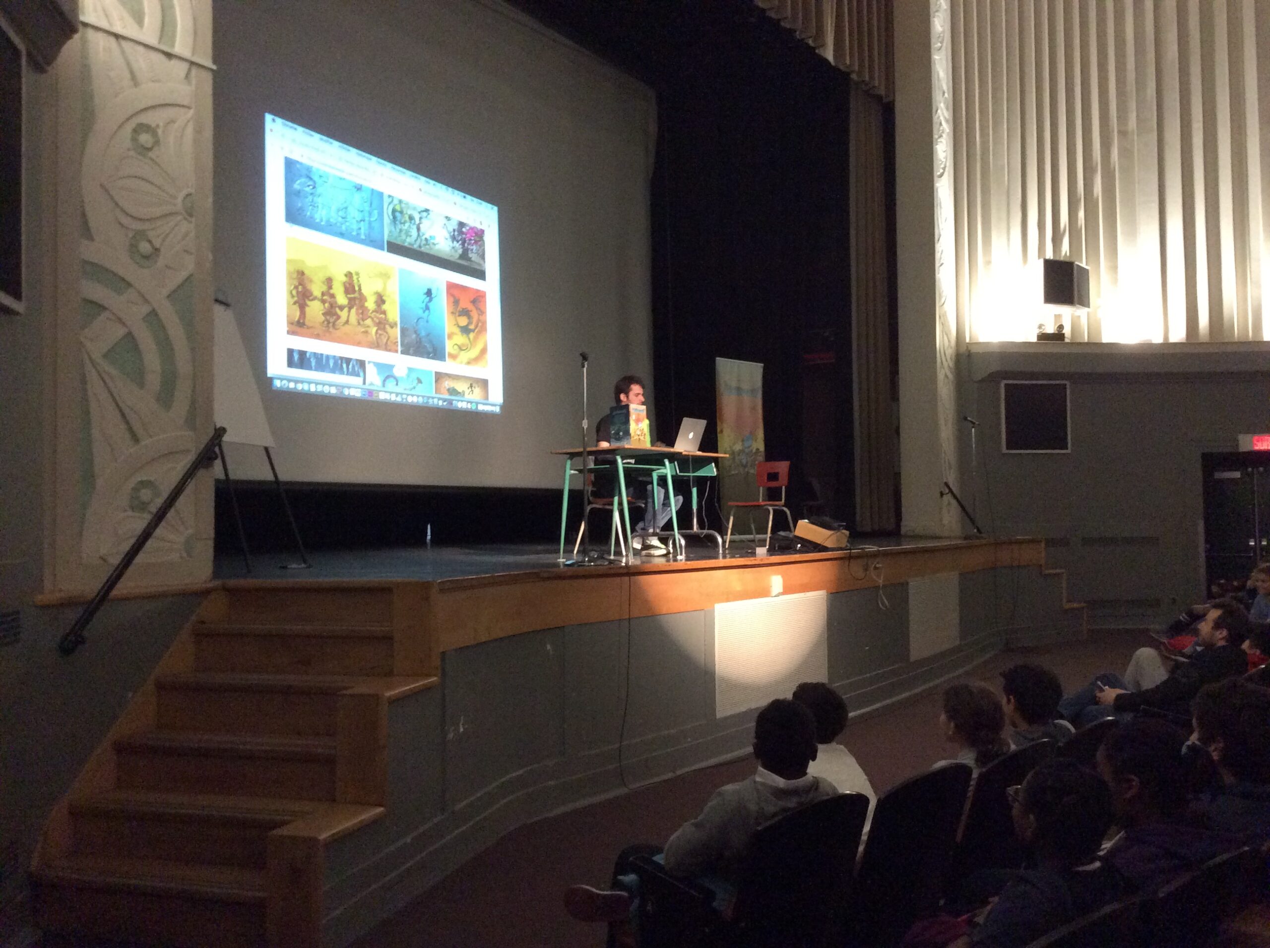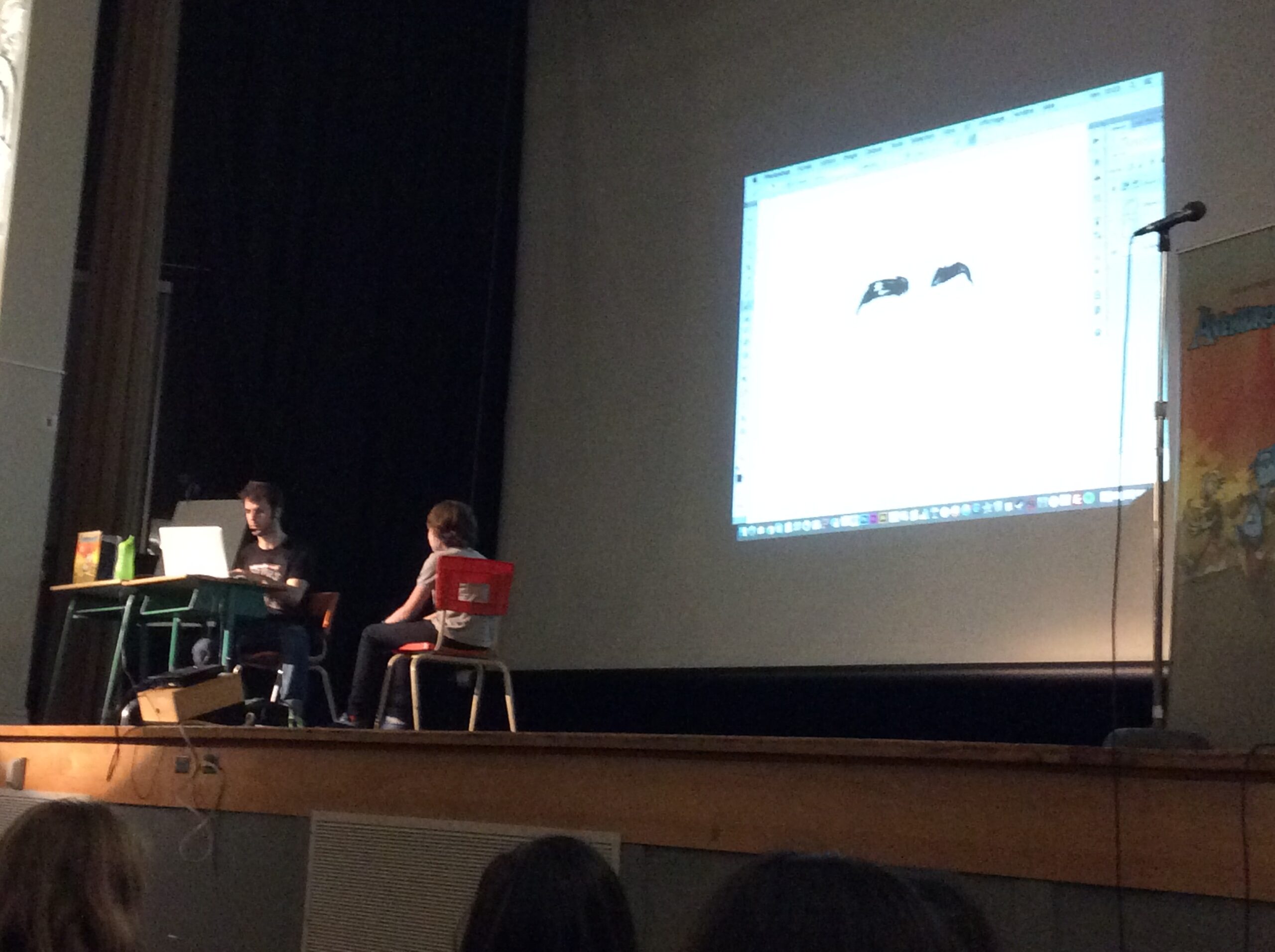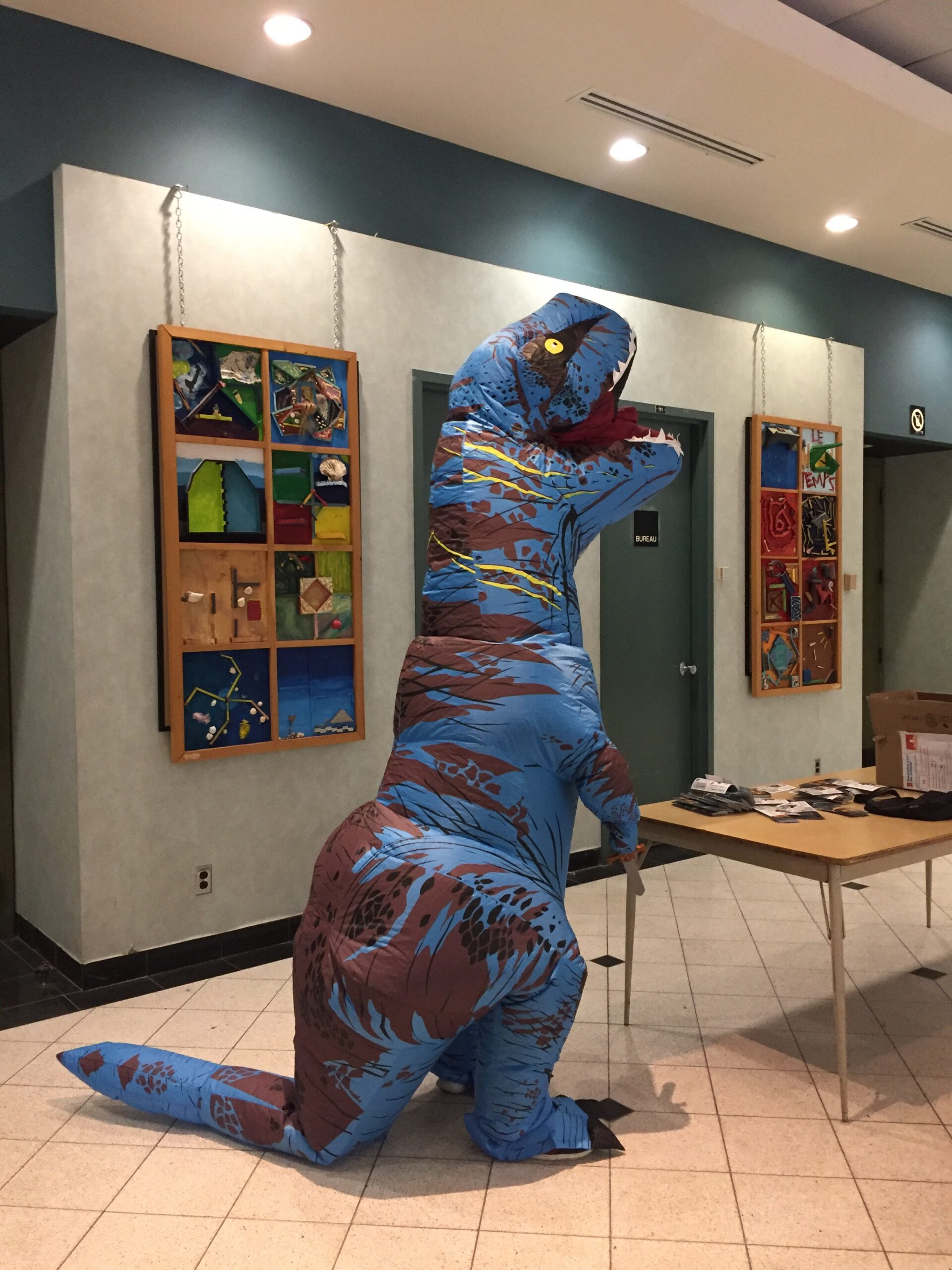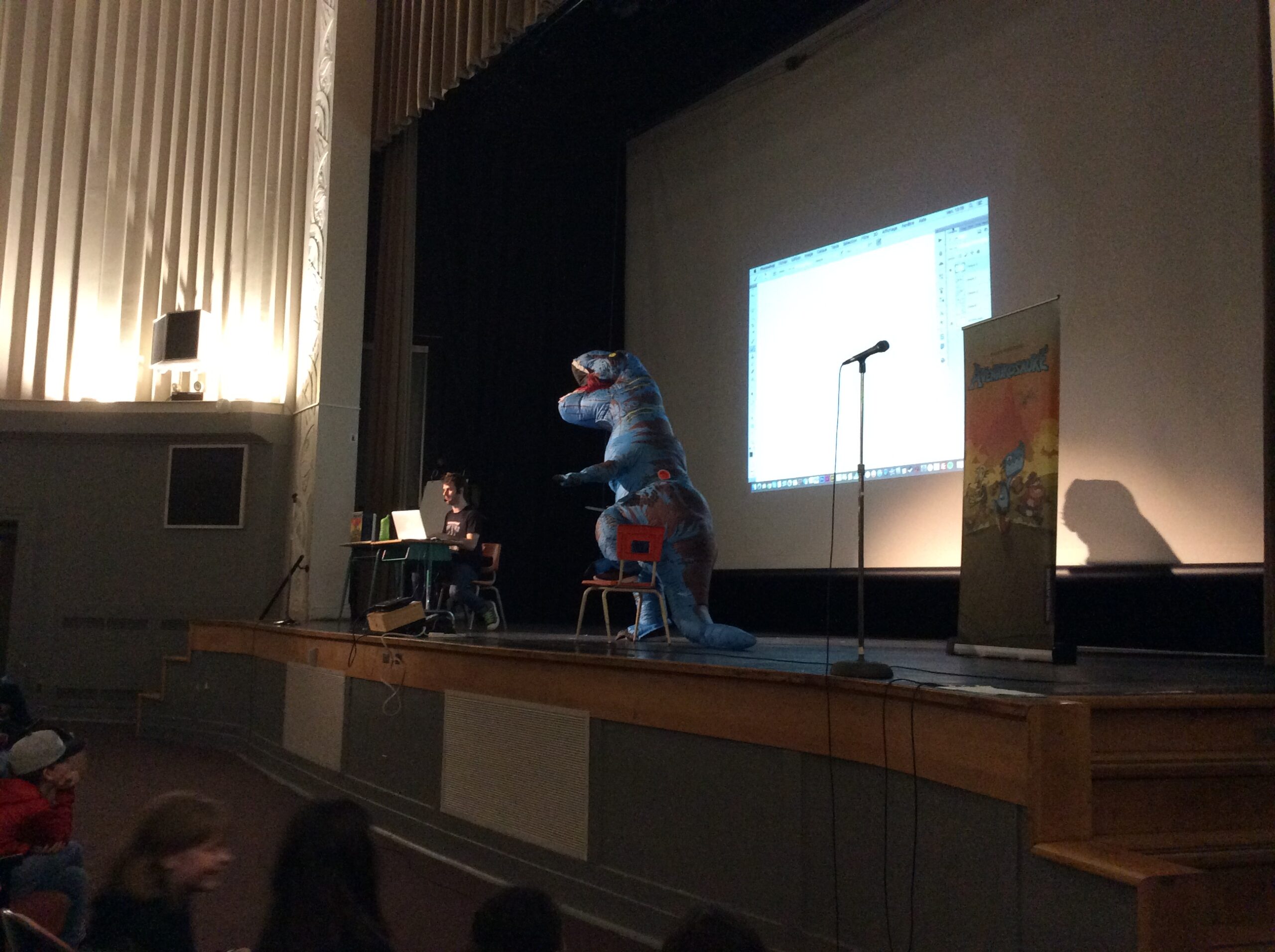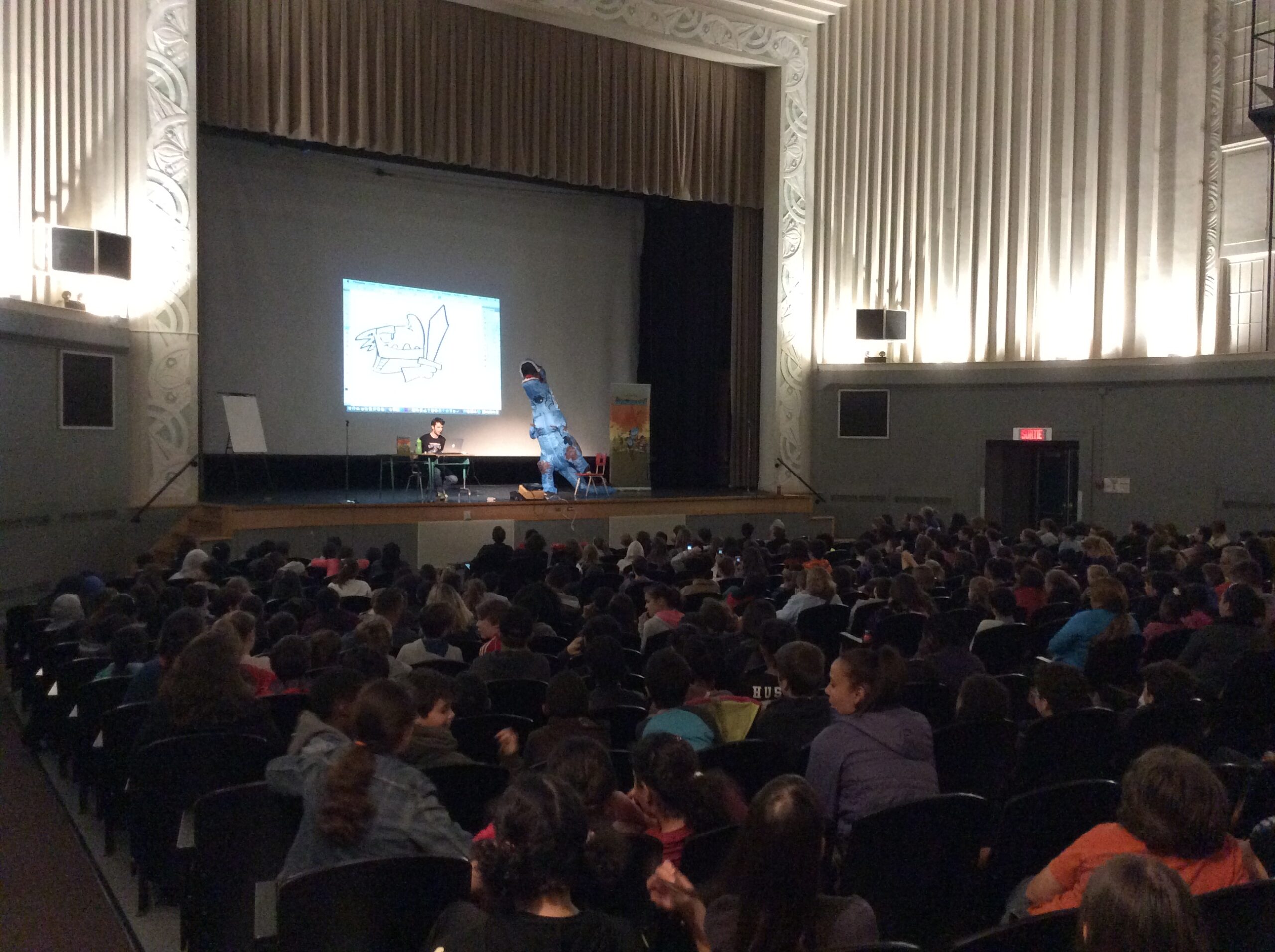 En après midi, Julien Paré-Sorel, gagnant de plusieurs distinctions et auteur, entre autres de la série Étienne et Charlot, de Léthéonie, d’Aventurosaure et de Strip-O-nirik, a partagé ses talents de dessinateur devant un public émerveillé.