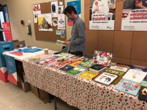 Dans le cadre de la 20e édition de la campagne La lecture en cadeau, l’équipe des bibliothécaires de la CSDM, en collaboration avec l’équipe de la librairie Bric à Brac, a récolté près de 200 livres pour les enfants québécois  !  Grâce à l’implication et à la générosité des employés de la CSDM, des livres comprenant des cartes pour les enfants, ont été remis à la Fondation pour l’alphabétisation, porteuse du projet.