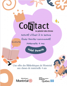 Venez vivre une activité d’éveil à la lecture, école-famille-communauté, spécialement conçue pour le volet parents de la maternelle 4 ans.