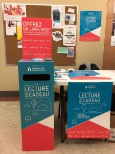 Dans le cadre de la 20e édition de la campagne La lecture en cadeau, l’équipe des bibliothécaires de la CSDM, en collaboration avec l’équipe de la librairie Bric à Brac, a récolté près de 200 livres pour les enfants québécois ! Grâce à l’implication et à la générosité des employés de la CSDM, des livres comprenant des cartes pour les enfants, ont été remis à la Fondation pour l’alphabétisation, porteuse du projet.