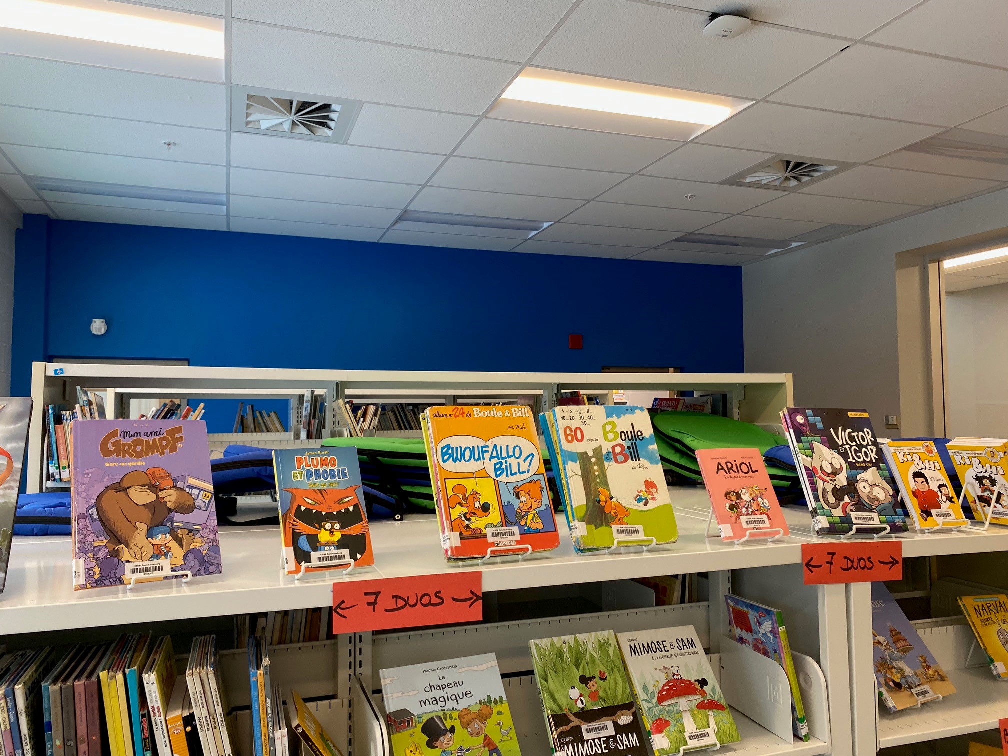 Vous cherchez l’inspiration pour dynamiser la bibliothèque de l’école ? Suggestion originale et colorée réalisée à l’École Louisbourg !