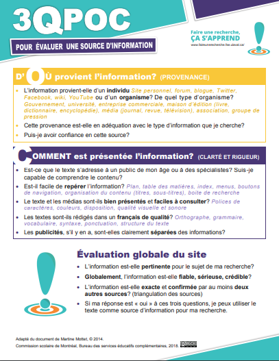 Vos élèves savent-ils chercher quand vient le temps s’informer ? Ont-ils une bonne méthode de travail ? Savent-ils évaluer les sources et être critique envers l’informations qu’ils trouvent ? Utilisent-ils l’information de manière éthique ?